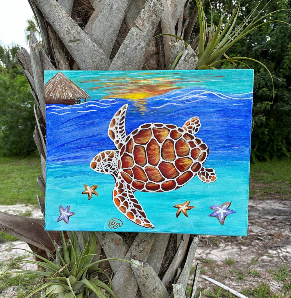 If you watched my YouTube video from my Fort Myers Beach walk after storm Debby. Here is that painting that was under the shells when I was showing my shell finds. I painted this with some friends at a guided painting social.