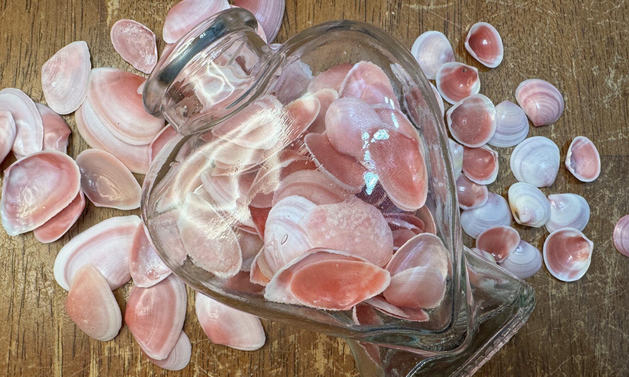 Original Post: Oh, how I love picking up these little pink shells—Rose Petal Tellins! I find a lot of them on the west coast of Florida. In my experience at Fort Myers Beach and Tigertail Beach on Marco Island I seem to find them in more abundance than other west coast beaches. How fun these are to find—that pretty pop of pink in the sand. I’ve ran into a few over my way on my east coast beaches too, but I noticed that they were more circular in shape and smaller, so I called them the east coast version of a rose petal…until!